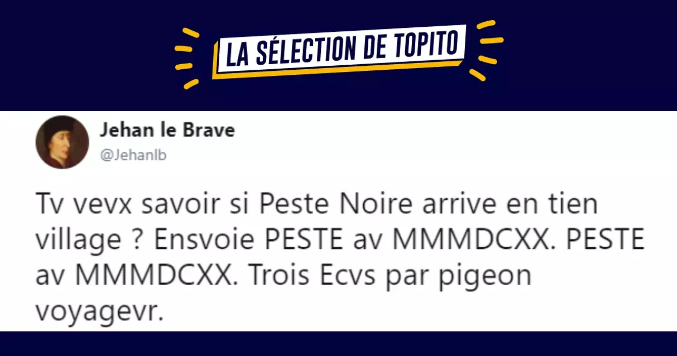 Bon là je vais tenter un truc : @Jehanlb est un twittos qui me fait délirer de délire. Il utilise le langage de la France du moyen-âge, formant ainsi des blagues bien huilées qui demandent un temps de compréhension. Mais en vrai c'est marrant alors je t'invite 1 millénaire en arrière.