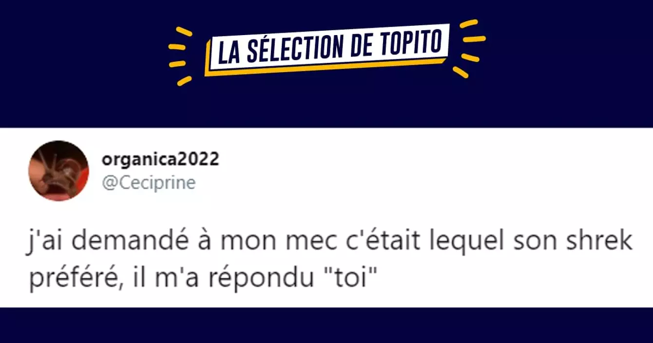 Allez c'est parti pour la petite compilation de tweets qui ne mange pas de pain, et cette semaine, c'est Shrek qui entre en scène. Voici quelques tweets de qualité moyenne à supérieure, sans couenne, ni colorant ni conservateur sur ce personnage qu'on a adoré suivre pendant 4 films géniaux et des dessinés animés pas ouf.