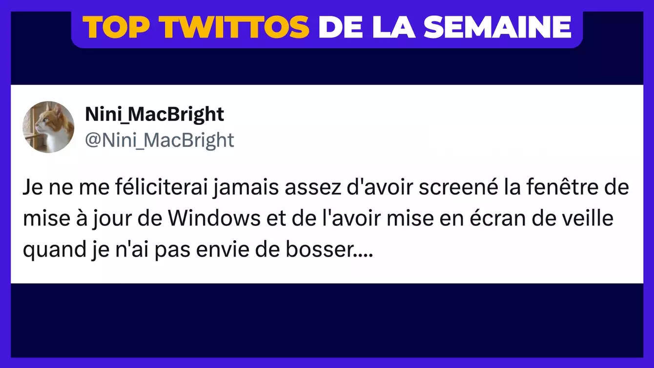 Hello les ptits potes ! C'est l'heure du top twittos, le rendez-vous de la semaine où on vous balance les meilleurs tweets d'un rédacteur du World Wide Web. Aujourd'hui, c'est au tour de Nini MacBright qui aime beaucoup les chats et les blagues complotistes qui finissent par « on sait pas… ». Si tu apprécies ce top, n'hésite pas à le partager à tous tes amis, à ton facteur qui ne passe que quand ça lui chante et à ton crush que tu stalkes sur Insta. Si tu en veux plus, on a aussi les meilleurs tweets sur les déménagements et les tweets de la semaine, un max de fun pour tout le monde (sauf une personne).