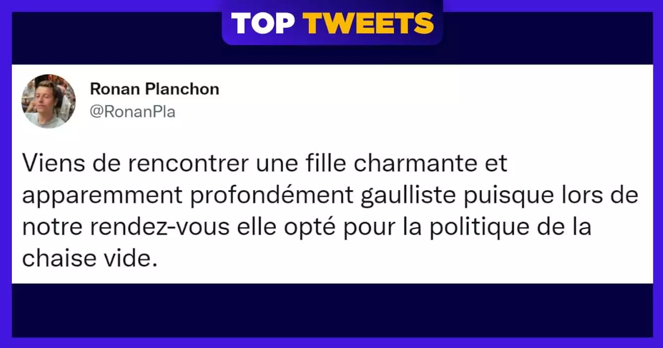 L'actualité, c'est pas fastoche fastoche au quotidien : quand on voit les photos de la canicule ou les photos des incendies qui font peur, ça donne plus envie de s'ouvrir les vaisseaux sanguins avec un couteau à beurre que de célébrer la vie. Heureusement, on peut compter sur des gens comme @RonanPla pour nous parler d'actu avec éthique, professionnalisme, mais surtout nous rendre le smile avec un max de second degré. Allez le follow si vous voulez être les premiers sur l'info.