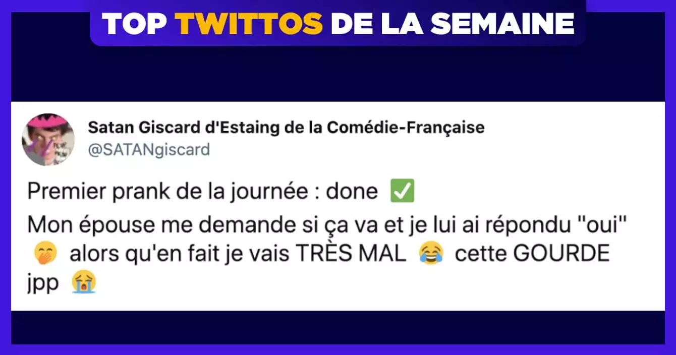 Salut les ptits potes, c'est de nouveau moi avec le top twittos, ce moment bien particulier où on vous partage les meilleurs tweets d'une seule personne choisie avec amour. On a des blagues courtes, des boutades sur le confinement et des clashs à toute berzingue pour l'amour du rire. Bon week-end à tous !