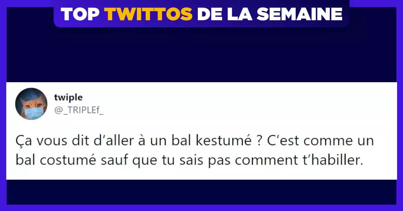 Hello les ptits potes, on se retrouve comme tous les vendredis pour le top twittos de la semaine et aujourd'hui, on se concentre sur @_TRIPLEf_ qui nous fait bien marrer comme il faut. Très bon week-end à tous et n'oubliez pas le couvre-feu à 18h (comme si on pouvait l'oublier…) !