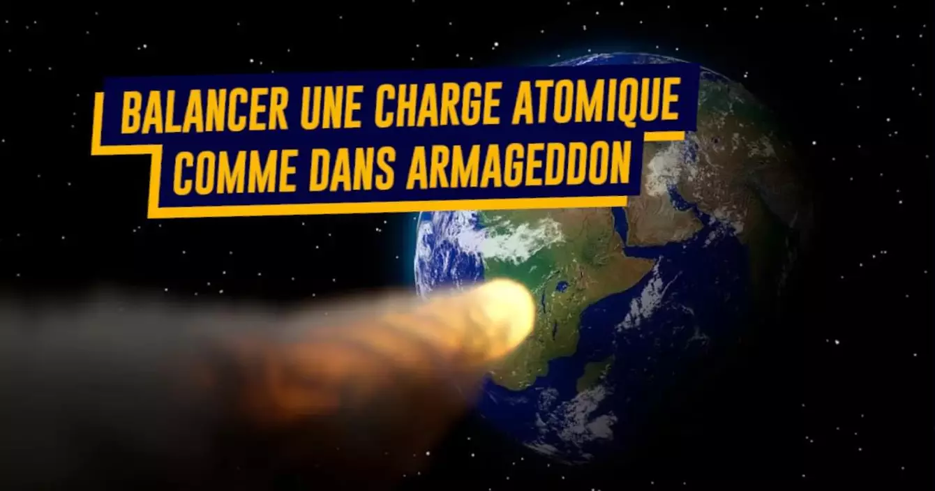 Vous avez vu le film Armageddon ? Il n'est finalement pas aussi irréel qu'on le pense. Des scientifiques ont affirmé lors d'un meeting de la NASA en 2012 que l'idée pouvait être utilisée, en remplaçant l'intervention humaine par un engin appelé « Hypervelocity Asteroid Intercept Vehicle ». Cet appareil envoyé dans l'espace aurait deux impacteurs, l'un pour frapper une première fois l'astéroïde et créer un cratère, le deuxième délivrant la charge nucléaire. Cette méthode n'en est qu'à un stade de réflexion, ses effets sont incontrôlables et son efficacité reste à démontrer.