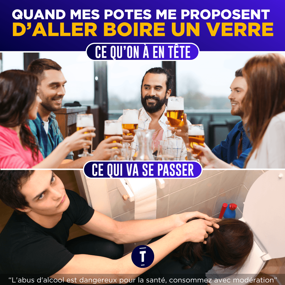 Ça paraît simple mais ça ne l'est pas tant que ça, parce que quand on boit, on ne se contrôle plus. Mais compter ses verres, par exemple, en se fixant une limite à ne pas dépasser peut permettre de ne pas se foutre mal.