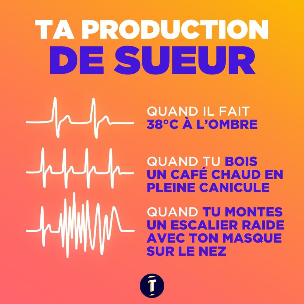 Sinon vous pouvez checker les conseils pour les gens qui transpirent trop et les expressions pour dire qu'on sue comme une escalope de dinde dans un bain marie.