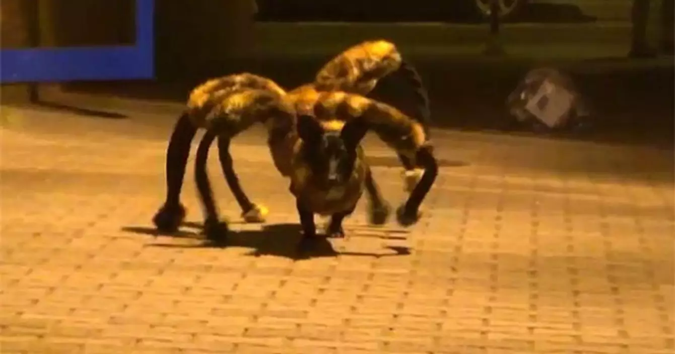 Imaginez-vous de nuit, croisant la route d'une araignée géante et qu'en plus dedans il y a un chien ? IMAGINEZ.