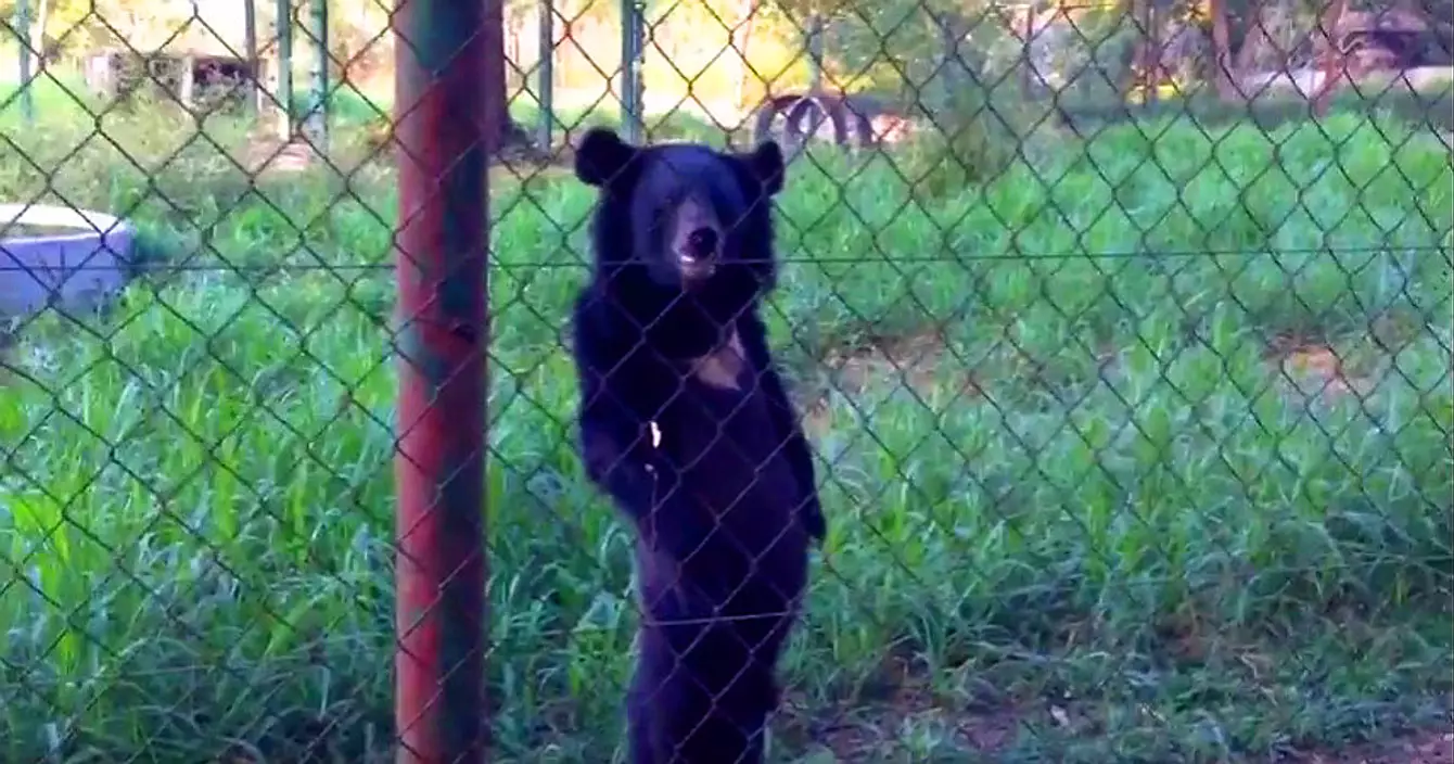 Au Laos, les ours se la racontent un peu, et celui-ci a décider de se comporter comme un être humain, glandouillant le long d'un grillage et se demandant pourquoi un abruti de touriste le filme.